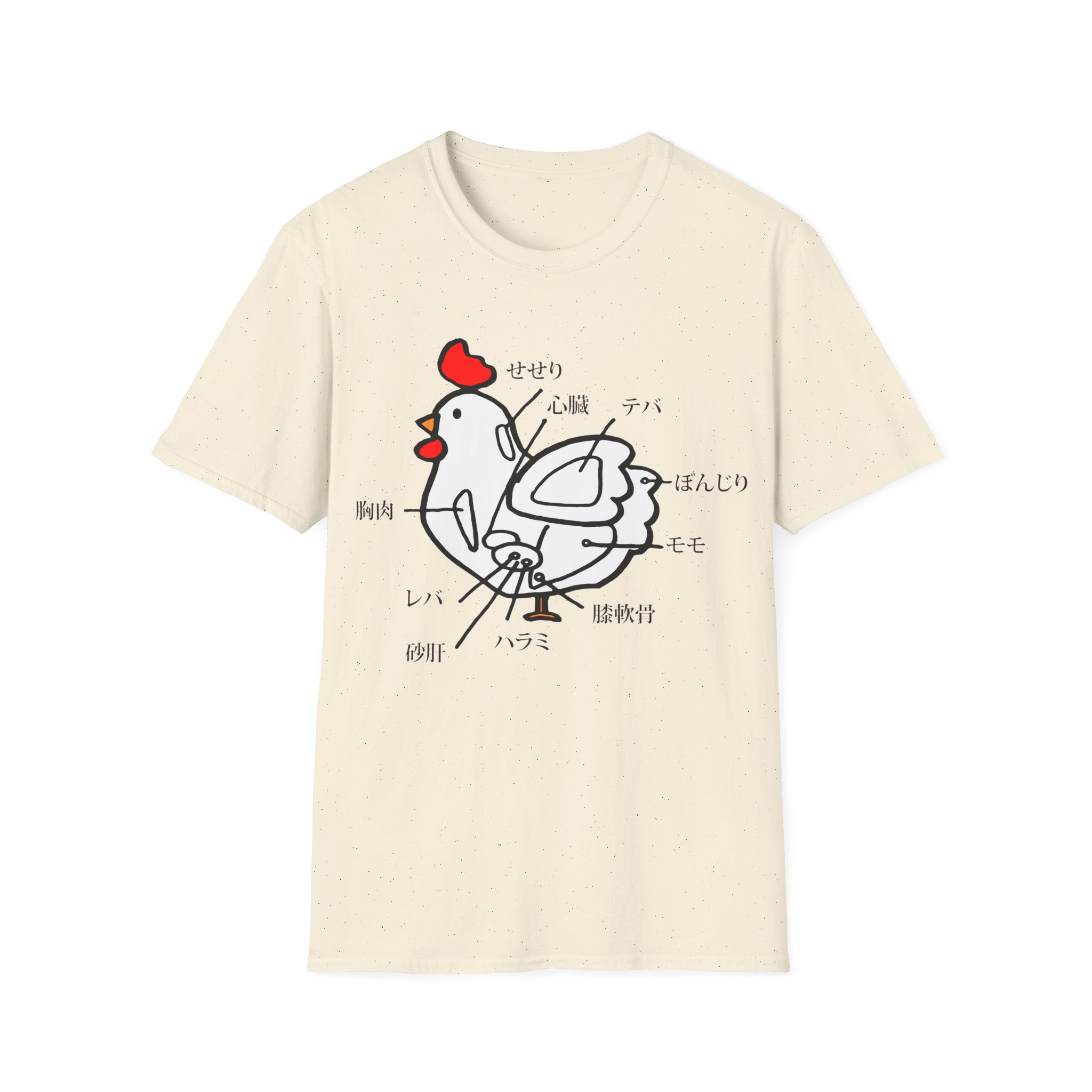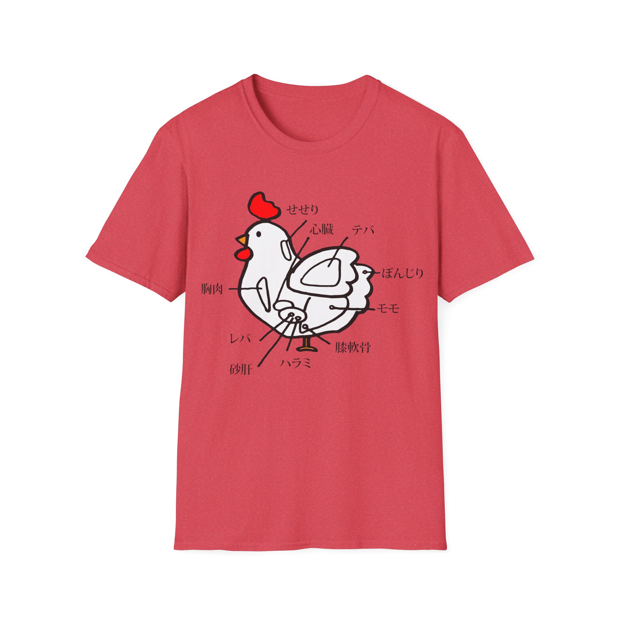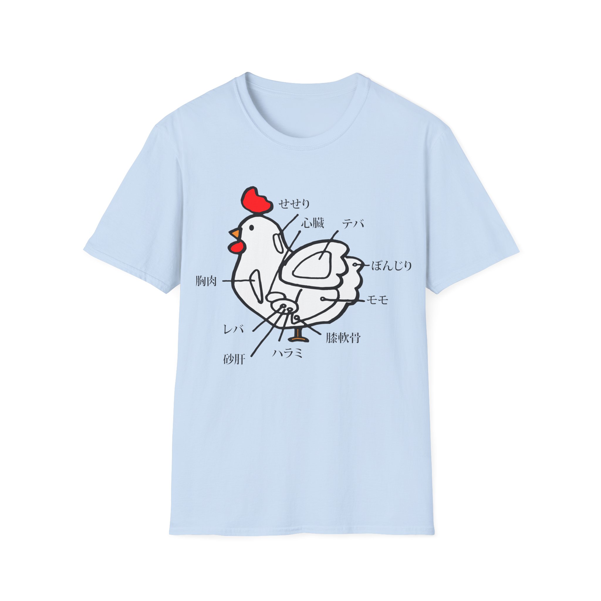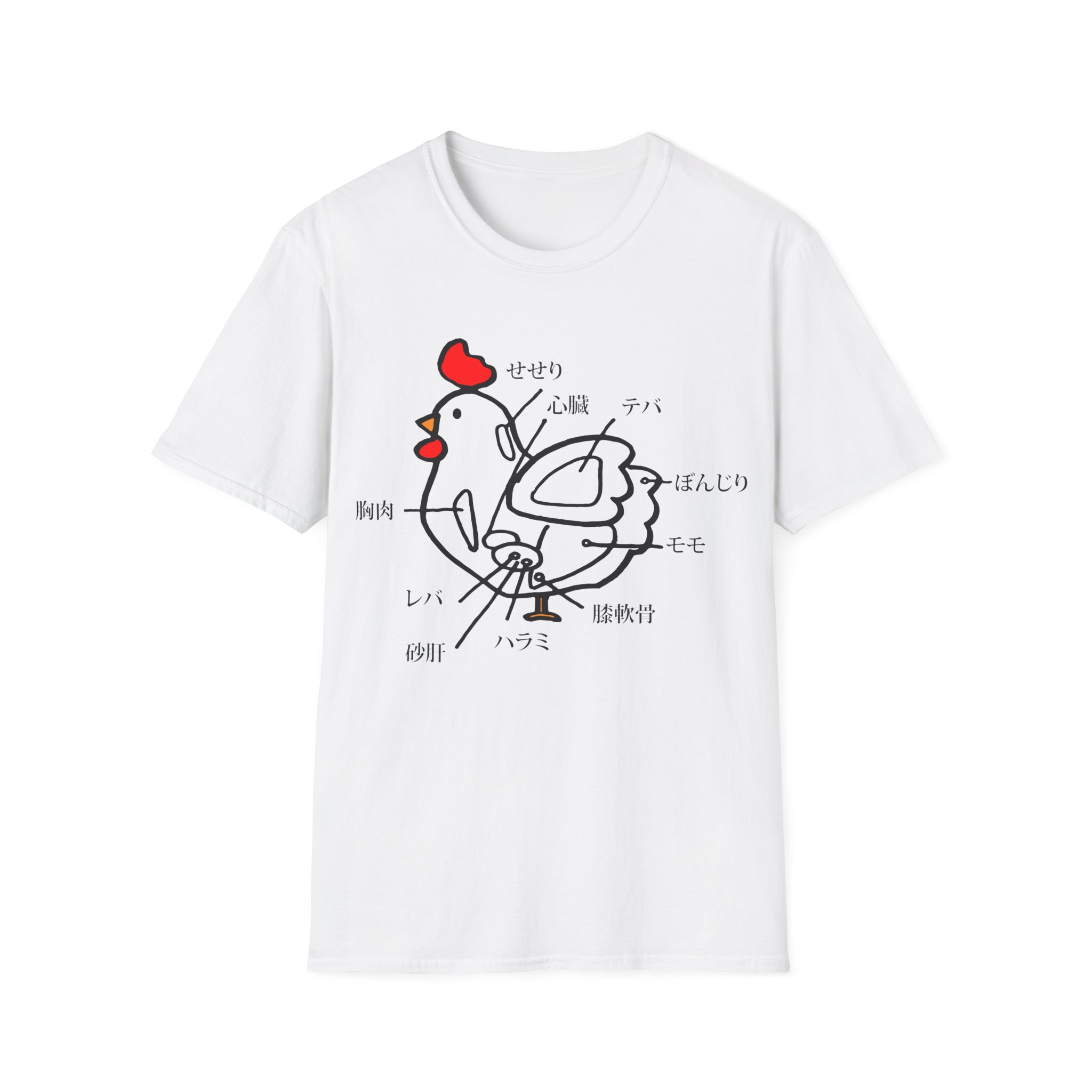 Spice up your style with this one-of-a-kind t-shirt featuring a unique Japanese chicken cut diagram! This playful and vibrant design, inspired by a traditional Japanese menu, is a surefire conversation starter.