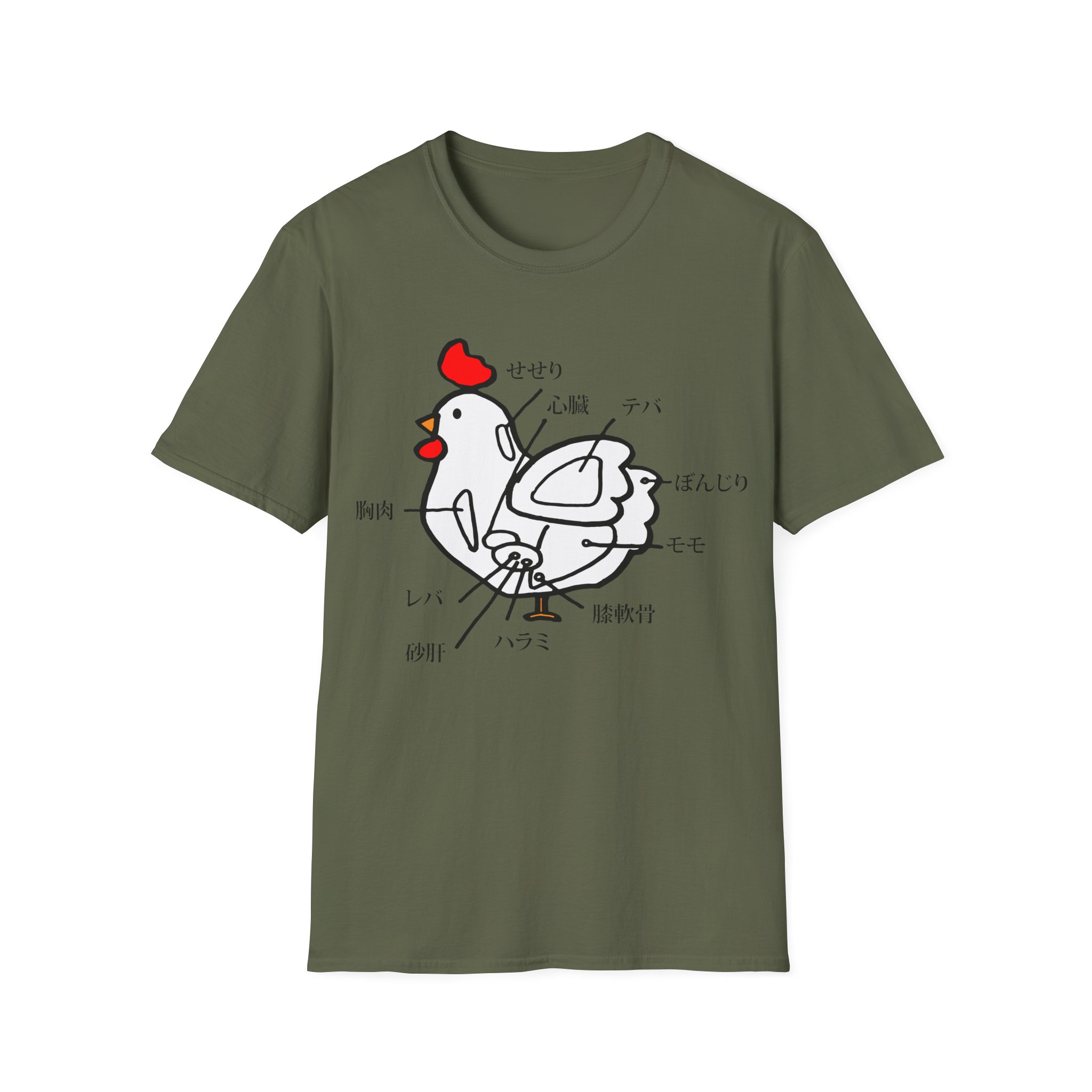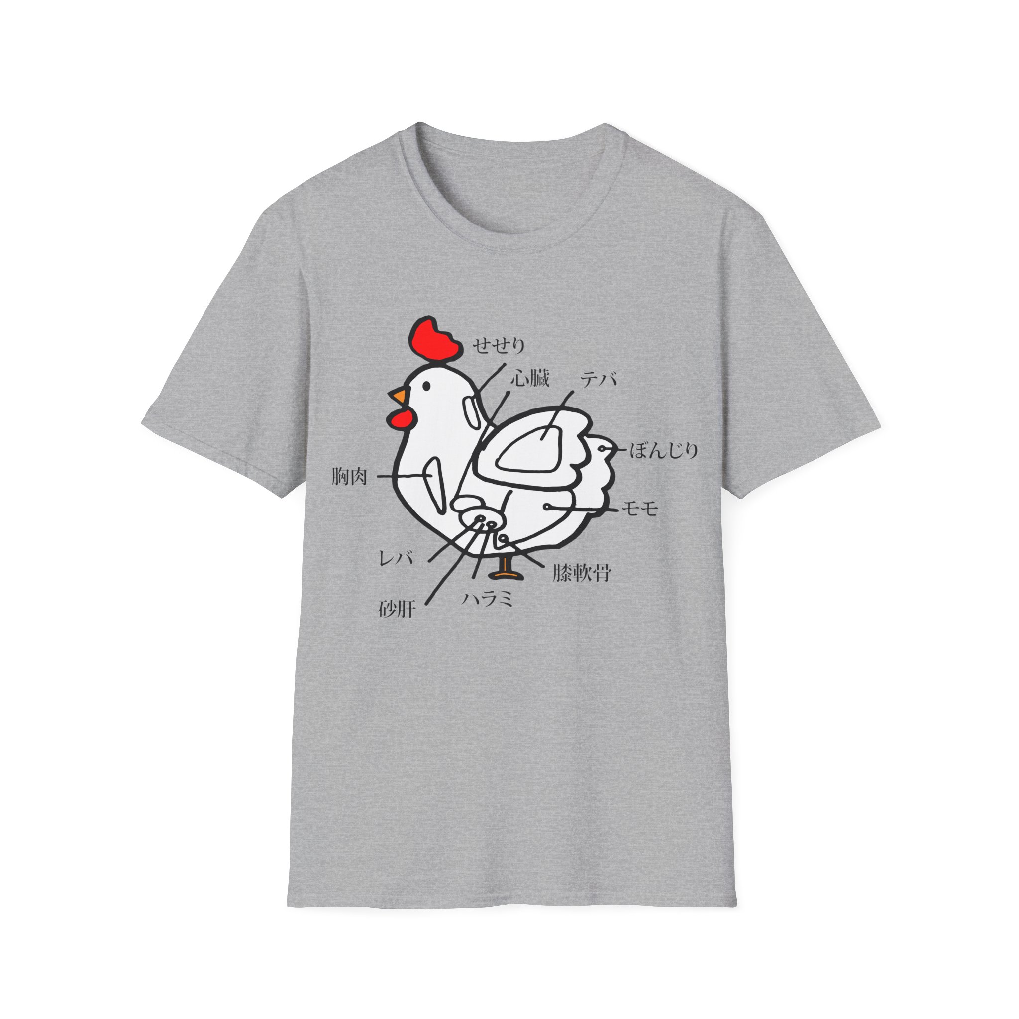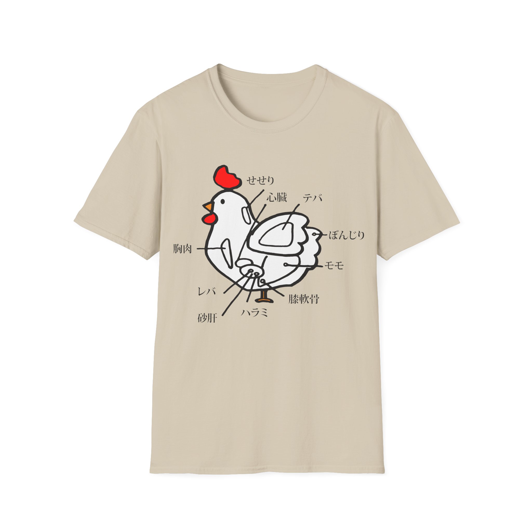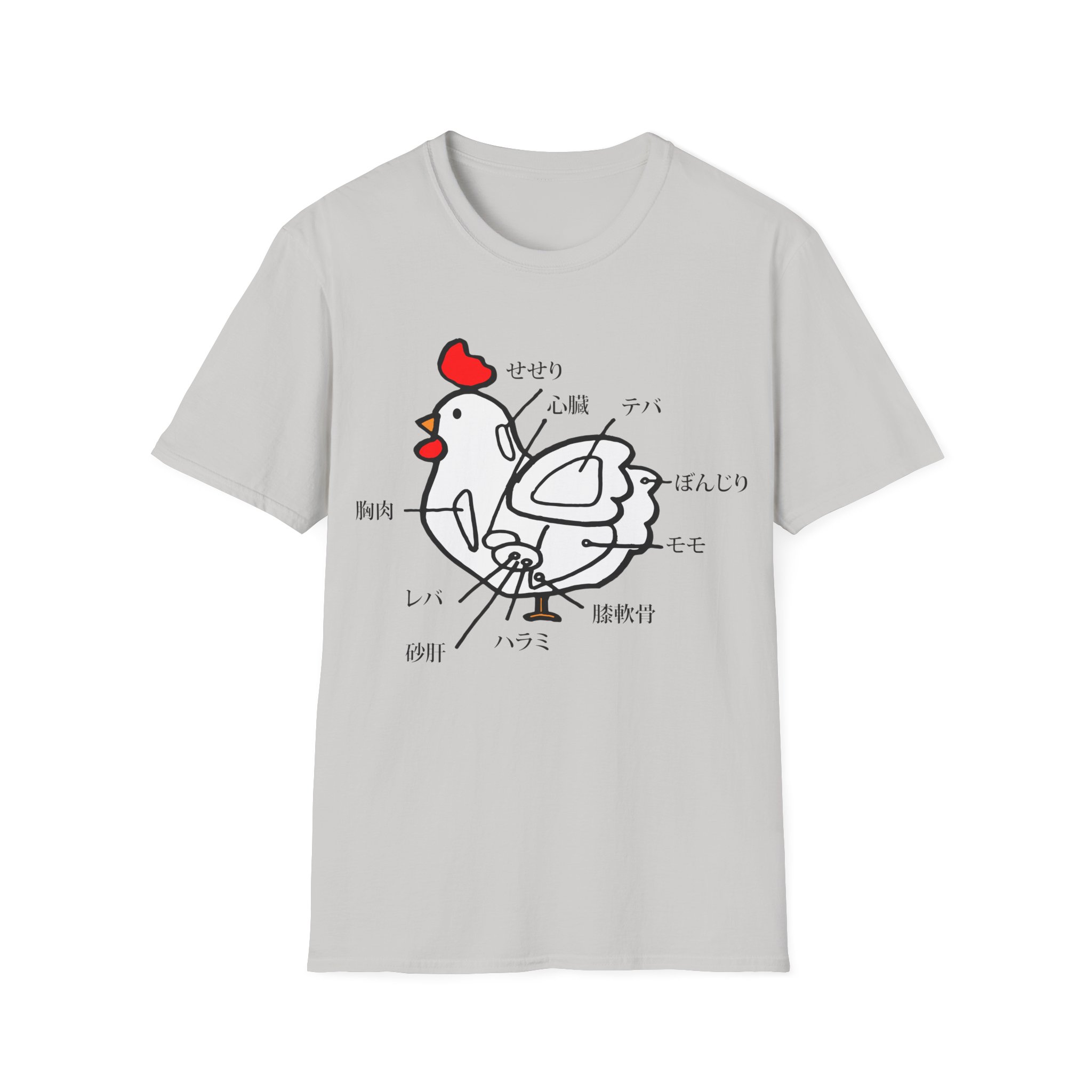 Spice up your style with this one-of-a-kind t-shirt featuring a unique Japanese chicken cut diagram! This playful and vibrant design, inspired by a traditional Japanese menu, is a surefire conversation starter.