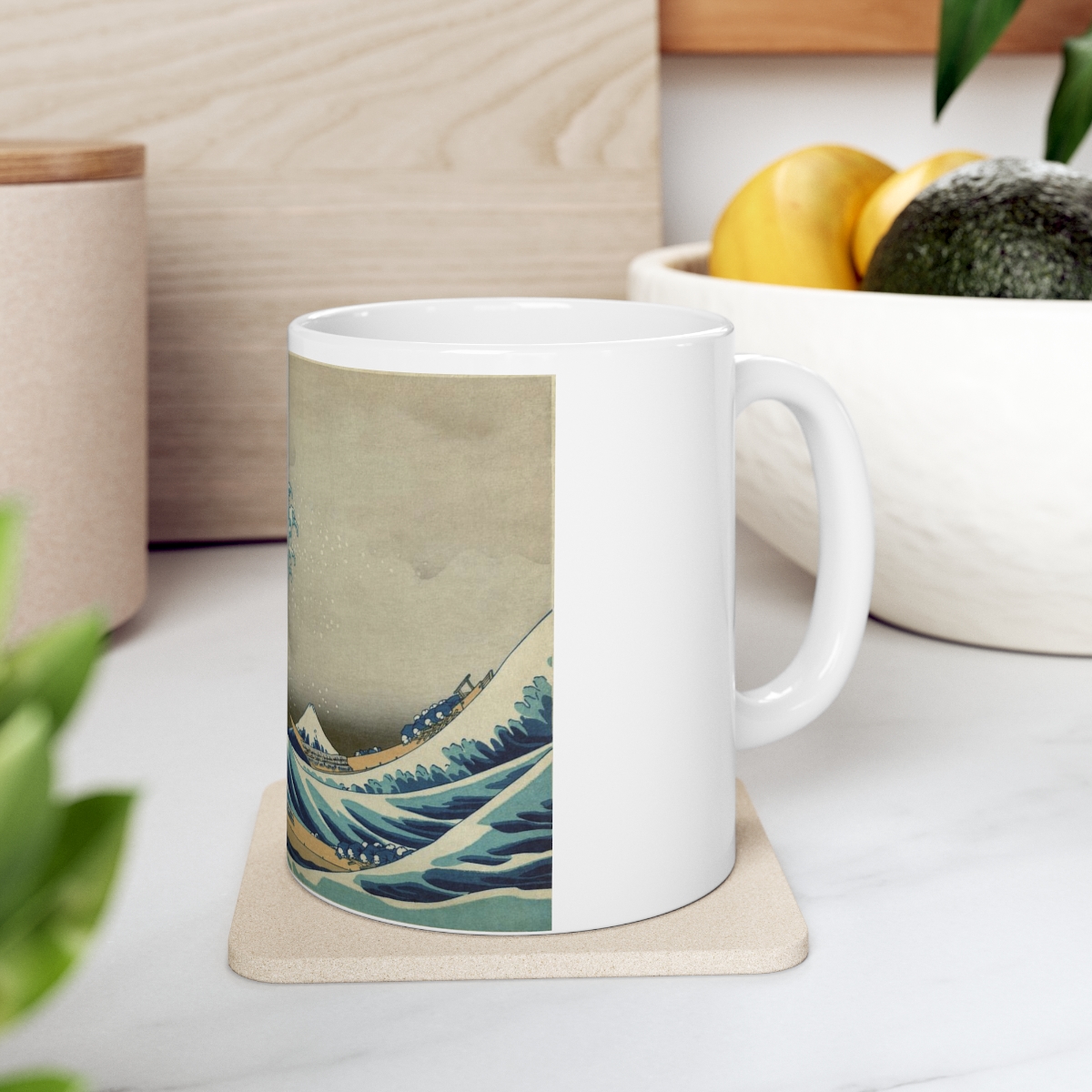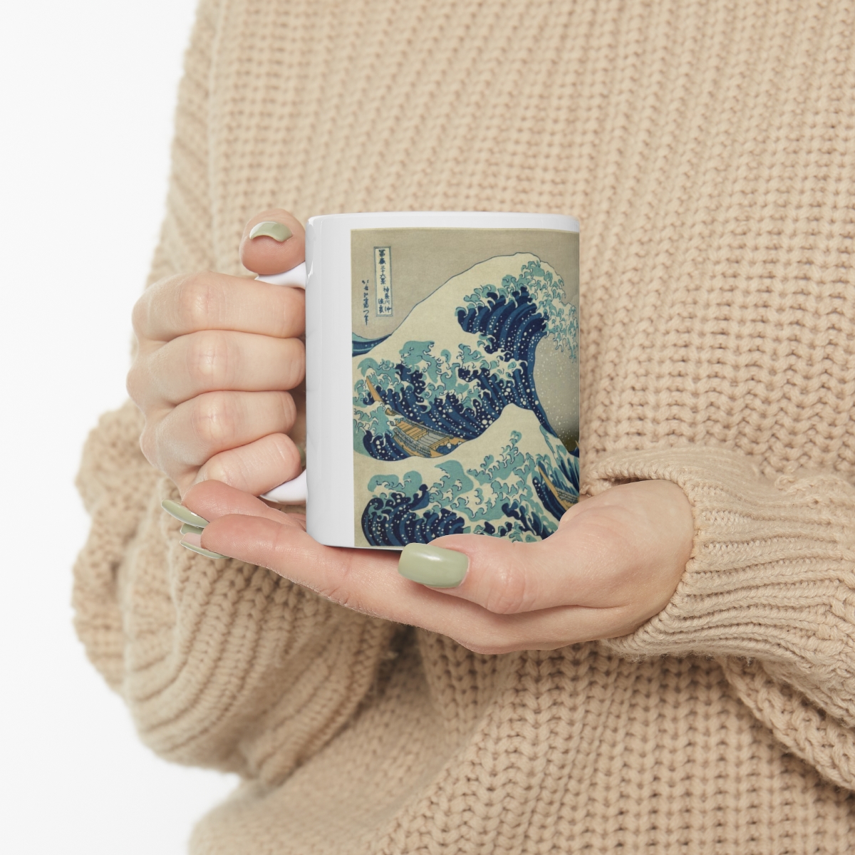 Embrace your morning ritual with a touch of artistry using our customized ceramic coffee mug. Adorning this mug is the iconic masterpiece, ‘The Great Wave off Kanagawa’ by Katsushika Hokusai, inviting you into a world of Japanese artistry with every sip. Crafted from durable, white ceramic, this 11-ounce mug is not only BPA and Lead-free but also microwave and dishwasher-safe, ensuring both safety and convenience. Thanks to advanced printing technology, the vivid colors of the woodblock ukiyo-e print burst to life, making this mug a visual delight for coffee, tea, and Japanese art enthusiasts alike. Whether it’s a treat for yourself or a thoughtful gift, indulge in the fusion of functionality and aesthetic beauty that this mug embodies, adding a touch of classic Japanese art to your daily brew.